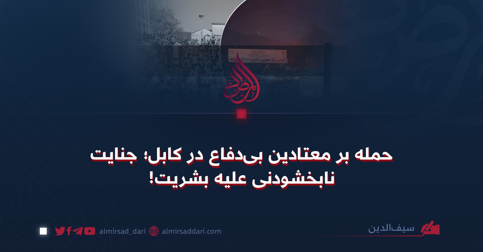 در ادامه همین جنایت عظیم جنگی دو شب پیش در پایتخت افغانستان، کابل، رویدادی جان‌کاه و دل‌خراش رخ داد که نه تنها مردم، مسئولان و رهبری امارت اسلامی افغانستان، بلکه هر انسان بیداروجدان را به شدت اندوهگین ساخت. این حمله ستمگرانه به معتادینی صورت گرفت که از پیش آسیب‌پذیرترین، بی‌پناه‌ترین و فراموش‌شده‌ترین قشر جامعه به شمار می‌آمدند؛ انسان‌های بی‌دفاعی که نه سلاحی دارند، نه توان دفاعی و نه بخشی از نبرد هستند.