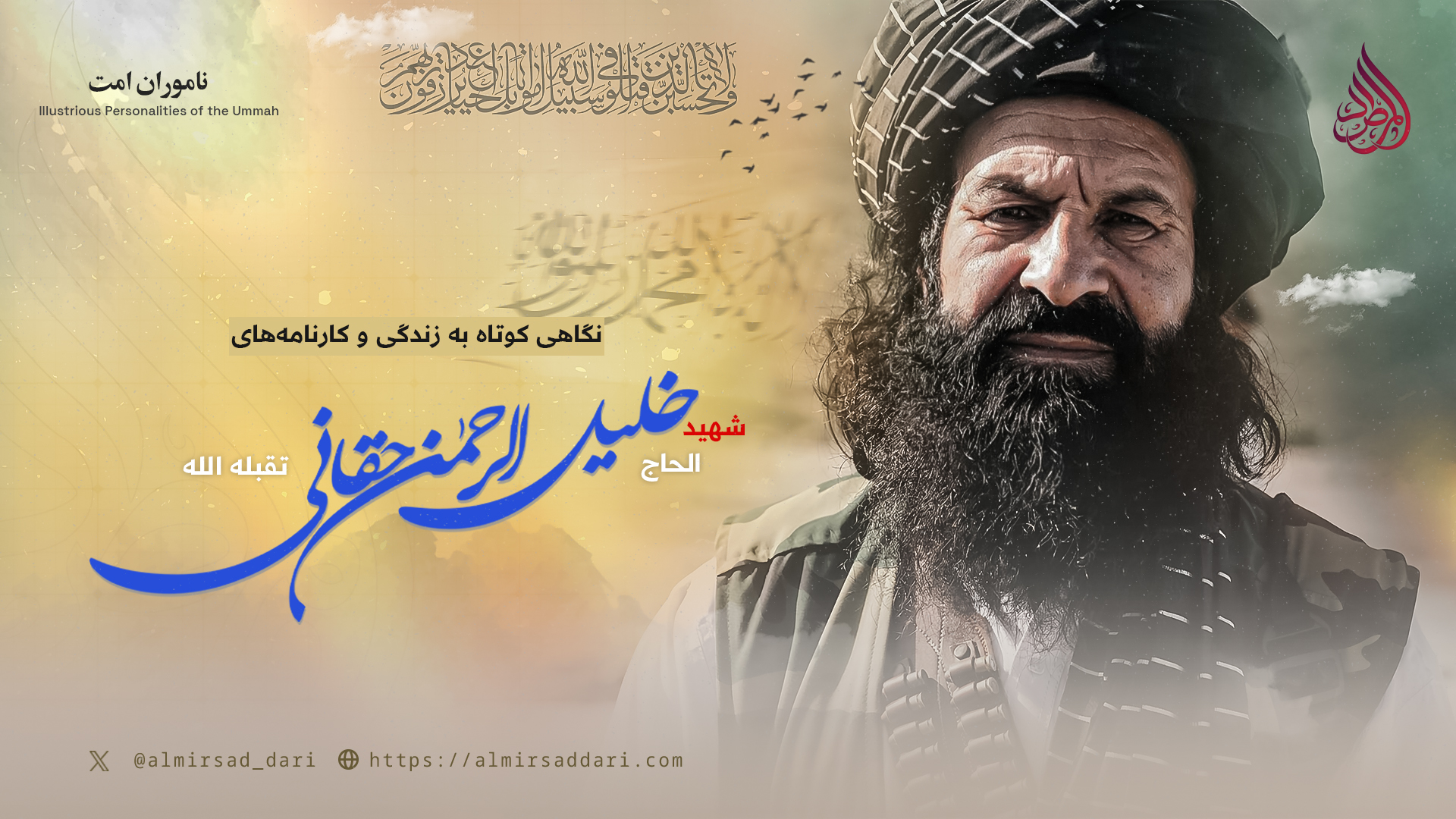 سرانجام این وجود بزرگ امت اسلامی، که در فهرست سیاه ایالات متحده جای داشت؛ آن مجاهد مؤمن که میلیونها دالر جایزه بر سرش تعیین شده بود و در طول دو انقلاب هرگز حاضر به سازش با کافران نشد، اما دشمنان سرسخت اسلام؛ داعشیهای خوارج، کار نیمهتمام اربابان خود را به پایان رساندند و در ساعت یک و نیم بعد از ظهر روز ۲۱ قوس سال ۱۴۰۳ خورشیدی، شهید الحاج خلیل الرحمن حقانی را در درون وزارت امور مهاجرین و عودتکنندگان، در یک حمله انتحاری به شهادت رساندند. نحسبه کذلک والله حسیبه!