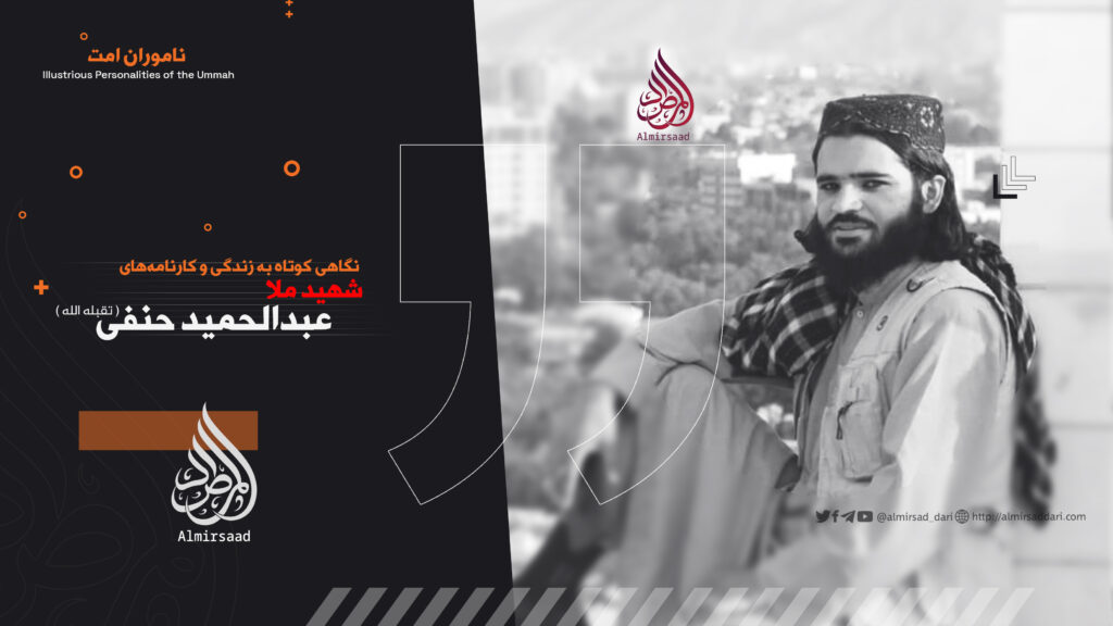 در سال ۱۴۰۳ خورشیدی پس از دیداری کوتاه با خانواده، بار دیگر بهسوی پنجشیر بهراه افتاد؛ گویی دل او جز در میدانهای جهاد و خدمت آرام نمیگرفت. اما در میانهی راه با تقدیری دیگر روبهرو شد؛ گروه خوارج داعش در مسیر راه به او حمله کردند و این مؤمن مجاهد ملا عبدالحمید حنفی (تقبلهالله) را بهشیوهای ناجوانمردانه به شهادت رساندند. نحسبه کذلک والله حسیبه.