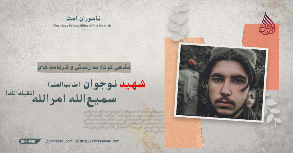 شهید سمیعالله تقبلهالله تحت قیادت امارت اسلامی و رهبری شهید مولوی حبیبالرحمن «فتحالله»، یکی از مجاهدان فداکار، مخلص و استوار دلگی «کاروان الهی» بود؛ وی از کودکی با مجاهدین عشق میورزید و از همان زمان در جریان مبارک جهاد از طریق خدماتی چون پاککاری اسلحه، جابجایی مواد منفجره و تجهیزات، آمادهسازی محل استراحت شبانه و سایر خدمات سهم میگرفت.