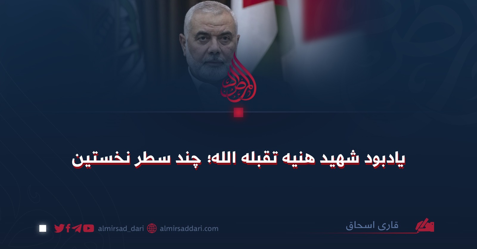 امروز ۳۱ جولای، مصادف است با روز شهادت احمد اسماعیل هنیه رئیس دفتر سیاسی حماس و از شخصیتهای برجستهٔ امت اسلامی؛ تاریخ اسلامی همواره صفحات خود را با کارنامههای کسانی رنگین کرده است که خنجری بر قلب باطل زدهاند، آنان که در برابر هیچ قدرت بزرگی سر خم نکرده و تنها بر خداوند متعال تکیه کردهاند.